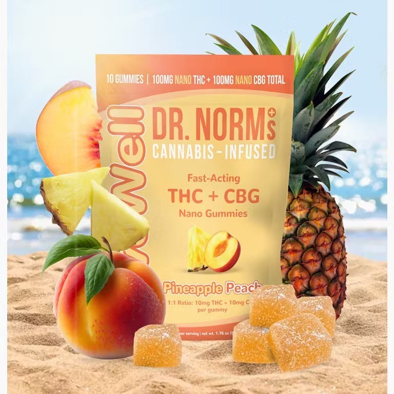 DR NORMS PINEAPPLE PEACH LIVEWELL 1:1 THC:CBG GUMMIES
